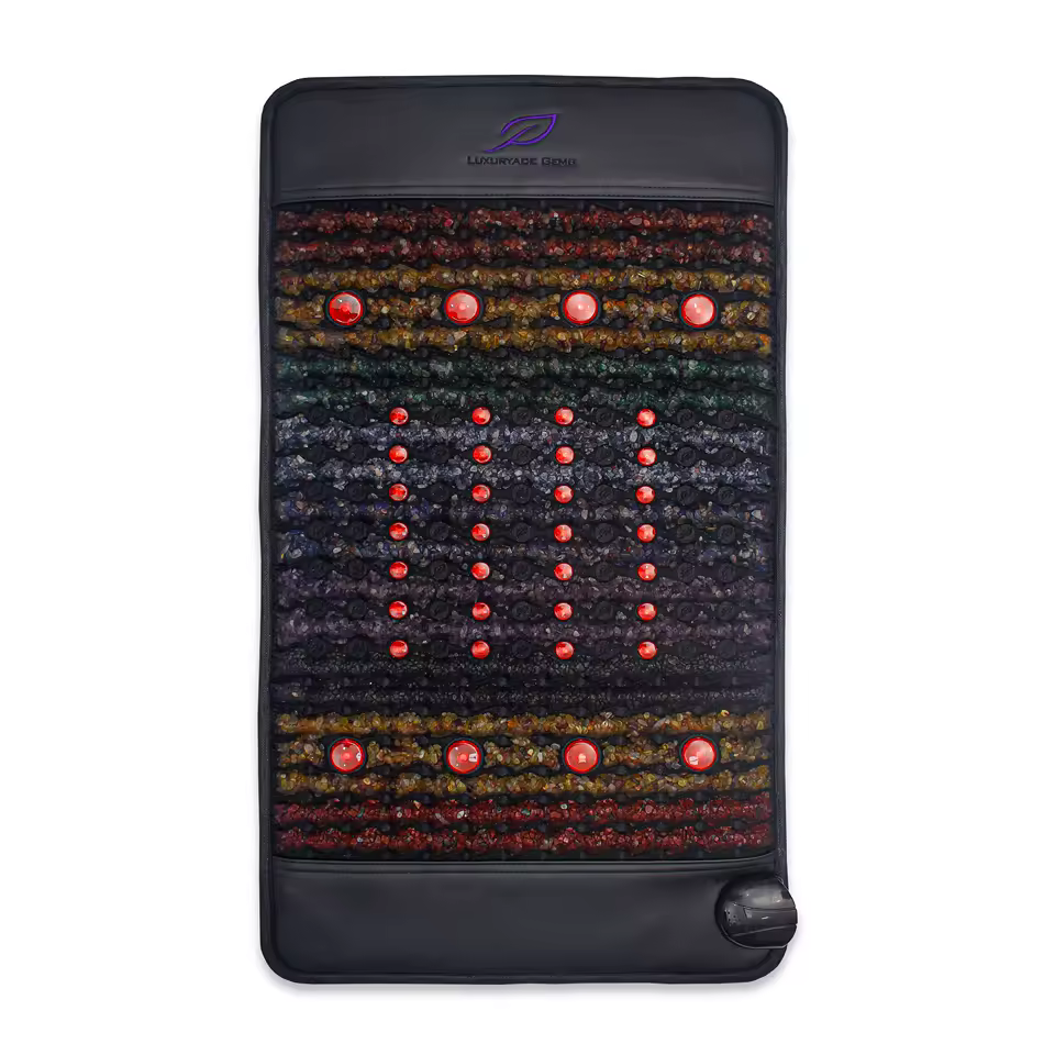 Luxuryade infracrvena fotonska PEMF prostirka je PEMF grejna prostirka sa dalekom infracrvenom tehnologijom koja kombinuje pet prirodnih terapija kako bi podržala prirodnu sposobnost tela za oporavak i obnovu. Tokom zagrevanja, prirodno drago kamenje emituje daleke infracrvene zrake i negativne jone. Ove terapije deluju sinergijski sa naprednom PEMF tehnologijom i crvenom svetlosnom terapijom, doprinoseći boljoj cirkulaciji, opuštanju mišića i ukupnom fizičkom i mentalnom blagostanju.