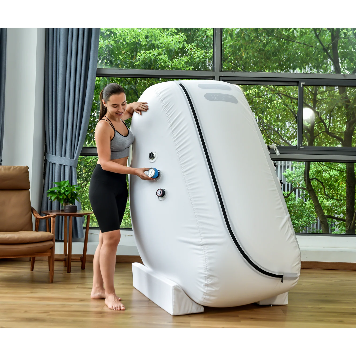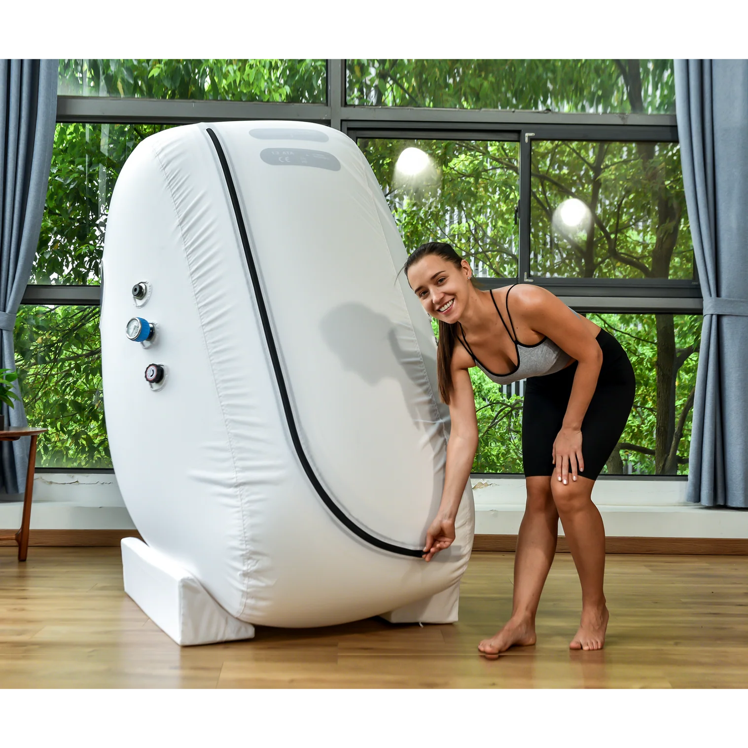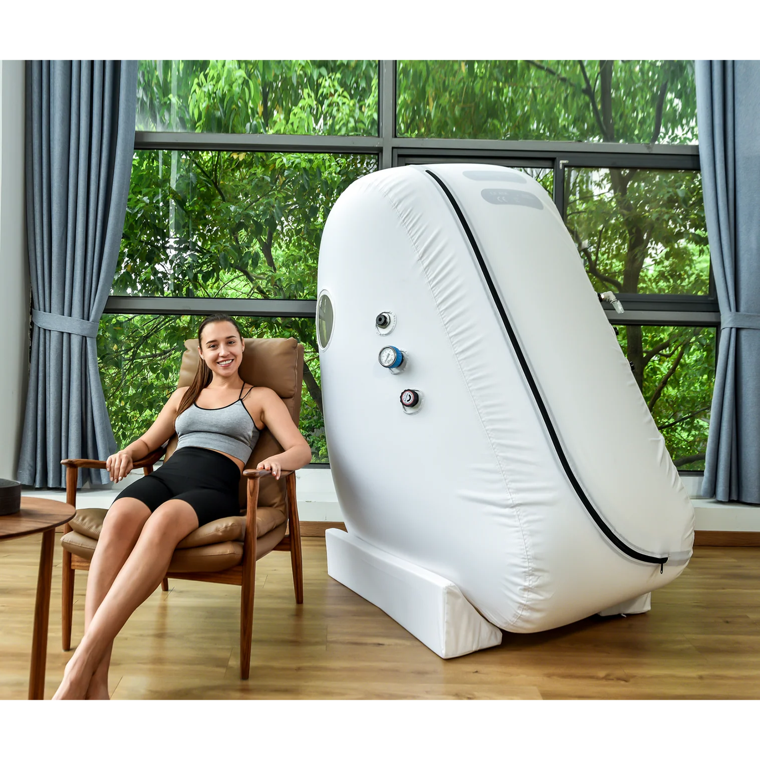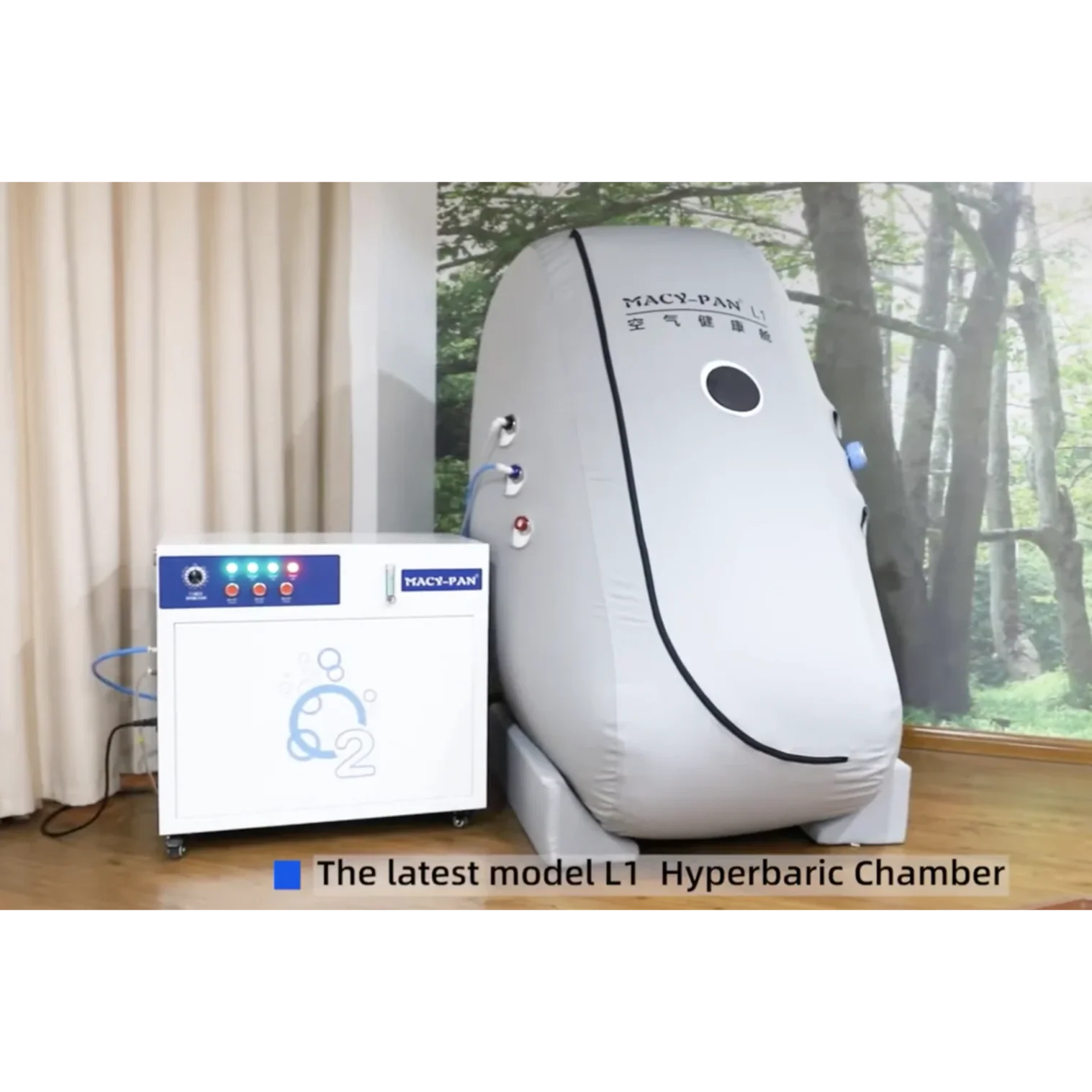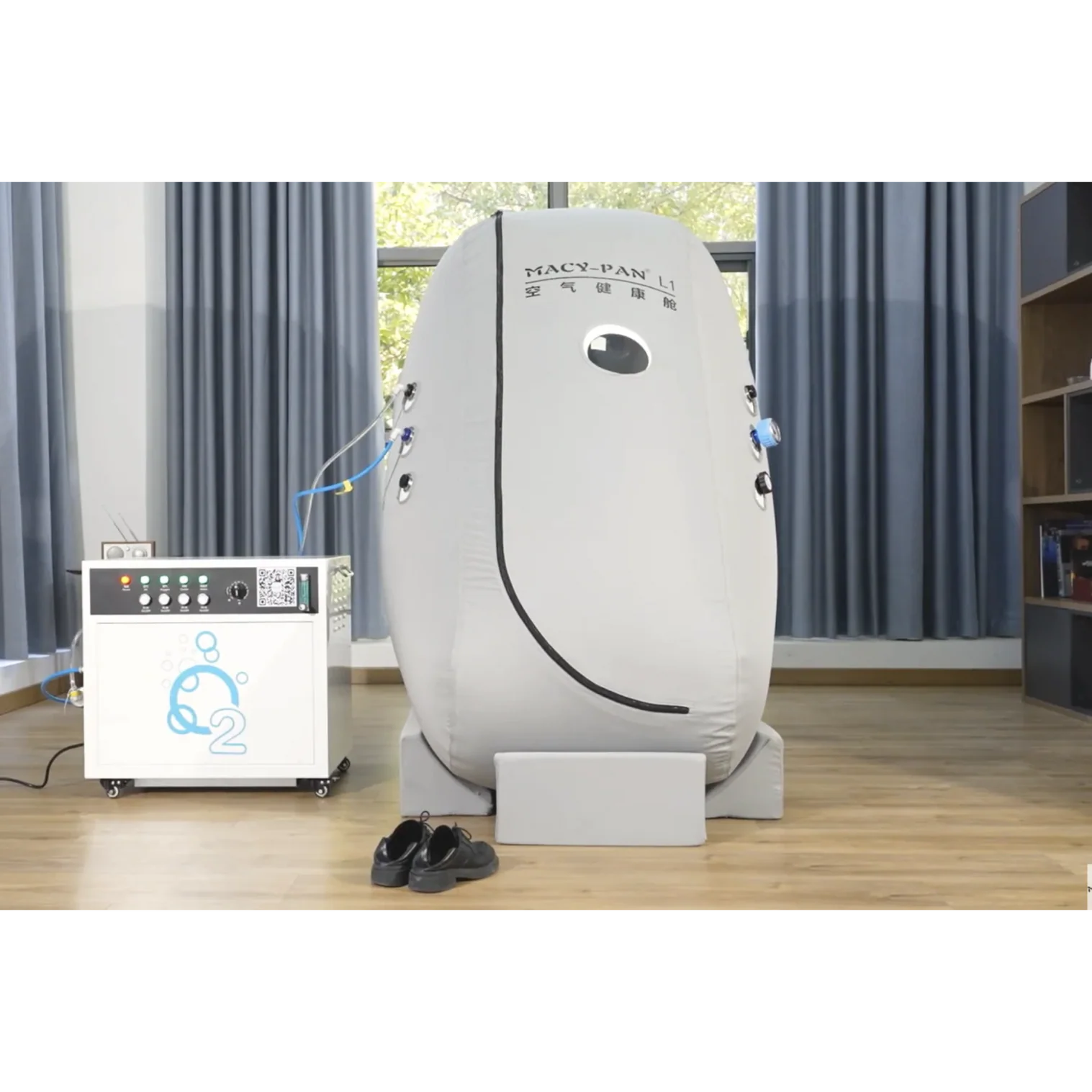 L1 prenosna hiperbarična komora sedećeg tipa odlikuje se vertikalnim dizajnom sa malom zauzetošću prostora, što je čini idealnim rešenjem za kućnu upotrebu, wellness centre, manje ordinacije i komercijalne prostore. Komora je dizajnirana tako da omogućava korišćenje standardne stolice za sedenje, pružajući prirodan i udoban položaj tokom terapije.